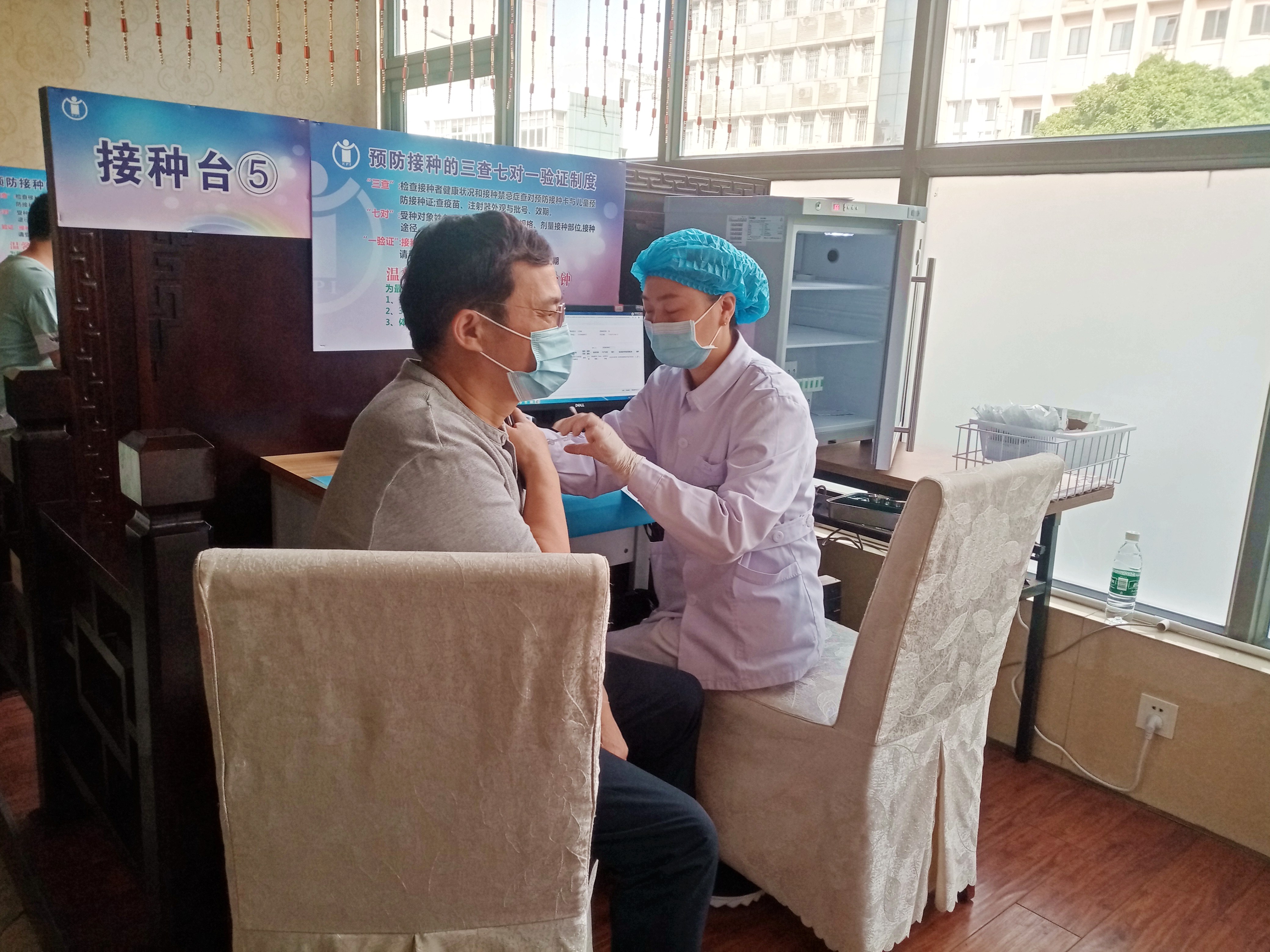 這天早上,在該社區(qū)衛(wèi)生服務(wù)中心,73人早早地排上了隊(duì)依次出示身份證、出示健康碼、測(cè)量血壓、核實(shí)登記、注射疫苗。疫苗接種工作開展得有條不紊,按順序一步一步下來,人均不到一小時(shí)就完成了所有工作。