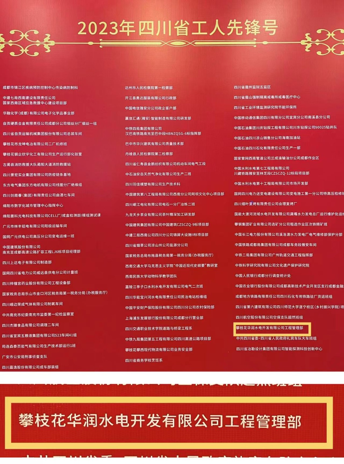 4月25日上午,2023年四川省慶?!拔逡弧眹?guó)際勞動(dòng)節(jié)暨表彰大會(huì)在成都舉行。川投集團(tuán)所屬川投能源的攀枝花華潤(rùn)水電開(kāi)發(fā)有限公司(簡(jiǎn)稱(chēng)“川投能源攀水電公司”)工程管理部被授予“四川省工人先鋒號(hào)”榮譽(yù)稱(chēng)號(hào)。
