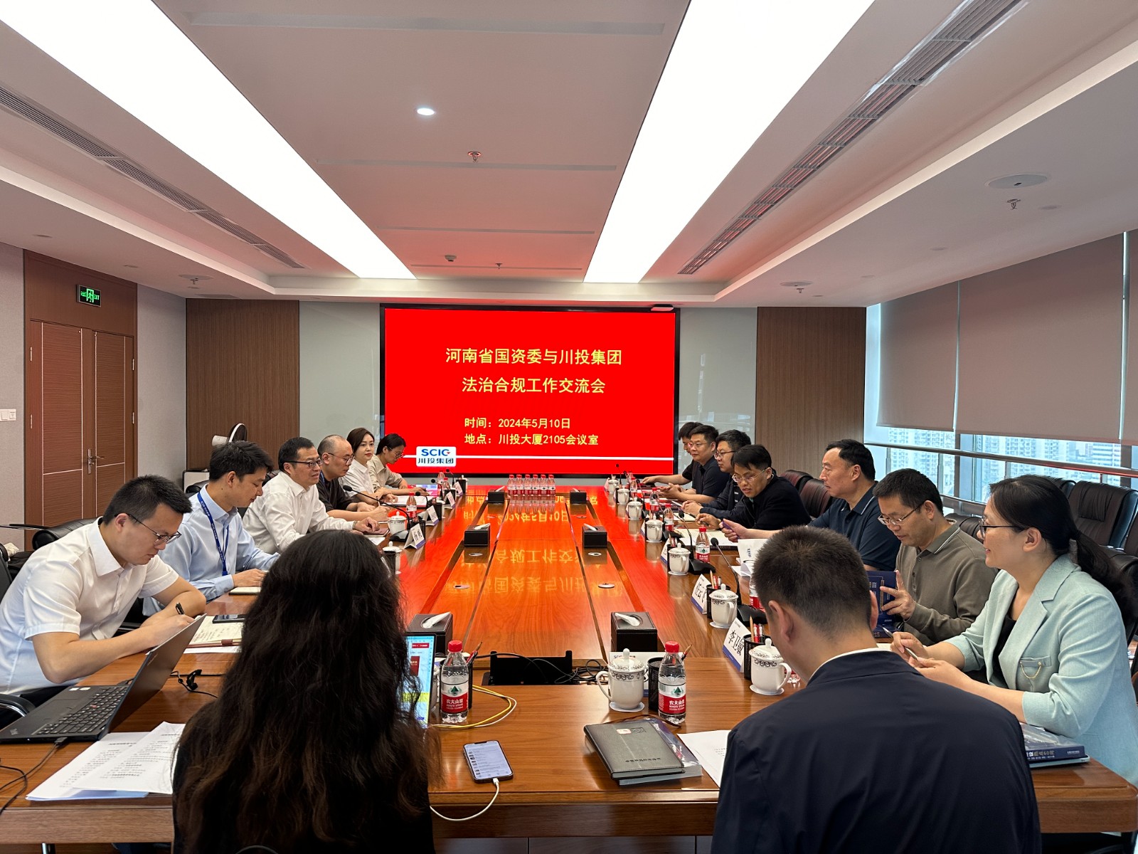 5月10日,河南省國資委相關(guān)負(fù)責(zé)人帶領(lǐng)河南省屬重點(diǎn)國企相關(guān)負(fù)責(zé)人到訪川投集團(tuán),雙方開展國資國企法治合規(guī)工作交流。集團(tuán)公司法務(wù)風(fēng)控部全體人員和部分所屬公司法務(wù)合規(guī)部門負(fù)責(zé)人參加了交流。