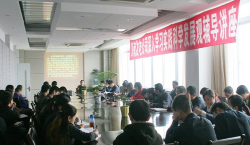 四川瀘州川南發(fā)電有限責任公司按照深入學習實踐科學發(fā)展觀活動實施方案的安排,認真做好黨員干部科學發(fā)展觀學習教育工作,11月13日上午,特邀請瀘州市委黨校副校長、教授陳永躍到公司舉辦科學發(fā)展觀輔導講座。公司領導班子全體成員,以及中層干部和黨員參加了講座。
