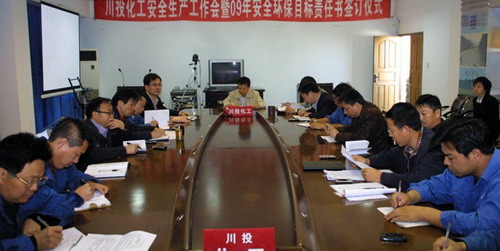 為實(shí)現(xiàn)安全管理的“可控、在控、能控”,近日,川投化工安委會(huì)召開了2009年度安全生產(chǎn)工作安排會(huì)暨安全生產(chǎn)、環(huán)保工作目標(biāo)管理責(zé)任書簽字儀式。公司總經(jīng)理李曉列、副經(jīng)理王清海、張建強(qiáng),總經(jīng)理助理董德明、安委會(huì)成員及各部(室)廠負(fù)責(zé)人共計(jì)20余人參加會(huì)議。會(huì)議由副總經(jīng)理王少甫主持。