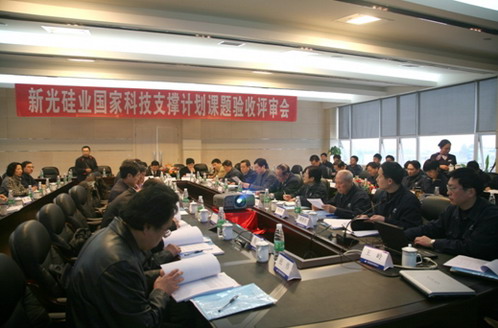 2009年3月12日,由中國電子材料行業(yè)協(xié)會(huì)組織召開的“新光硅業(yè)國家科技支撐計(jì)劃課題驗(yàn)收評(píng)審會(huì)”在我公司順利舉行。評(píng)審專家組由:電子材料行業(yè)協(xié)會(huì)半導(dǎo)體材料分會(huì)秘書長朱黎輝、中國可再生能源學(xué)會(huì)教授級(jí)高工趙玉文、清華大學(xué)教授陳皓明等共計(jì)10位專家組成。國家科技部高新技術(shù)發(fā)展及產(chǎn)業(yè)化司材料處調(diào)研員李寶山、國家科技部高新技術(shù)發(fā)展及產(chǎn)業(yè)化司材料處吳椿輝、電子材料行業(yè)協(xié)會(huì)主任魯瑾、電子材料行業(yè)協(xié)會(huì)李清巖、四川省科技廳巡視員譚開林、四川省科技廳高新處調(diào)研員程毅敏、樂山市副市長周勇、樂山市科技局局長郭捷,以及我公司領(lǐng)導(dǎo)班子成員出席了會(huì)議。會(huì)議由電子材料行業(yè)協(xié)會(huì)秘書長袁桐主持。