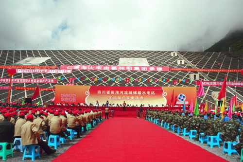 2009年8月28日,在川投田灣河公司誕辰七周年之際,四川省田灣河流域梯級(jí)水電站全部投產(chǎn)發(fā)電慶典在仁宗海大壩前隆重舉行。省國(guó)資委副主任梁志倉(cāng)、成都電監(jiān)辦專員張健、省國(guó)資委產(chǎn)權(quán)處處長(zhǎng)舒仕能、川投集團(tuán)總經(jīng)理郭勇、省政協(xié)經(jīng)委副主任、原川投集團(tuán)總經(jīng)理秦萬(wàn)祥、雅安市市委常委、秘書(shū)長(zhǎng)、市總工會(huì)主席楊凱、甘孜州州政府副秘書(shū)長(zhǎng)易武,省電力公司、省安監(jiān)局、成都電監(jiān)辦、省建行、川投集團(tuán)、川投能源、甘孜州、雅安市、康定縣、石棉縣、草科鄉(xiāng)、田灣鄉(xiāng)的領(lǐng)導(dǎo)以及工程建設(shè)各參建單位的領(lǐng)導(dǎo)、來(lái)賓和建設(shè)者六百余人共同參加了慶典。慶典活動(dòng)由川投集團(tuán)副總經(jīng)理蔣國(guó)俊主持。