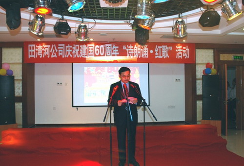 慶?;顒?dòng)上,公司員工慷慨激昂地朗誦了《飛騰吧 祖國(guó)》等四首自創(chuàng)詩(shī)歌,熱情奔放地演唱了《中國(guó)中國(guó)鮮紅的太陽(yáng)永不落》等10首紅色經(jīng)典歌曲。