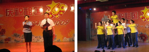 9月23日,由彭州市總工會牽頭主辦,彭州市工業(yè)局與天彭電力公司聯(lián)合承辦的慶祝建國60周年聯(lián)歡活動在彭州市自來水公司禮堂隆重舉行,彭州市委副書記譚學軍、市政府副市長李彬、市總工會常務(wù)副主席鄭貴華及市紀委等相關(guān)部門領(lǐng)導應邀出席了活動。