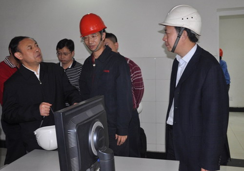 10月19日,四川省副省長(zhǎng)陳文華率省環(huán)保局、瀘州市有關(guān)領(lǐng)導(dǎo)和部門(mén)負(fù)責(zé)人前來(lái)川南發(fā)電公司,檢查公司節(jié)能減排工作情況。