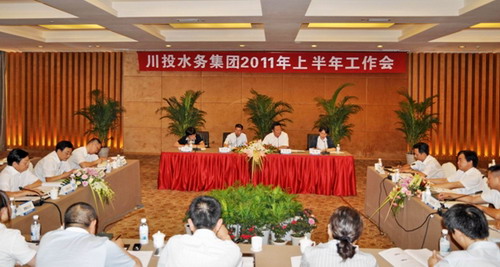 7月25日上午,川投水務在川投國際酒店召開2011年上半年工作會。川投水務董事長李文志、總經理梁有國、副總經理楊果、副總會計師王靜軼、川投水務本部全體員工及所屬公司總經理、綜合部、財務部負責人等共40余人參加了會議。