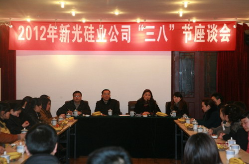 2012年3月8日,新光硅業(yè)公司慶祝“三八節(jié)”座談會在樂山金鷹山莊舉行,會議由公司紀(jì)委書記、工會主席余嘉樂同志主持。會上,余書記首先代表公司黨委和公司總經(jīng)理陳長江向長期堅(jiān)持在崗位上積極工作、銳意進(jìn)取,為公司發(fā)展做出貢獻(xiàn),的女職工表示崇高的敬意與節(jié)日的祝福。隨后,董事會秘書、公司總經(jīng)濟(jì)師李紅同志宣讀了2011年度公司先進(jìn)女工的表彰決定及表彰人員名單,并向受到表彰的女職工頒發(fā)榮譽(yù)證書。