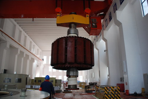 3月11日15時20分,當金窩電站2F機組重達260噸的發(fā)電機轉(zhuǎn)子緩緩上升、平移至安裝間轉(zhuǎn)子專用支墩上時,宣告了金窩電站2F機組A級檢修重要部件的起吊工作順利完成。