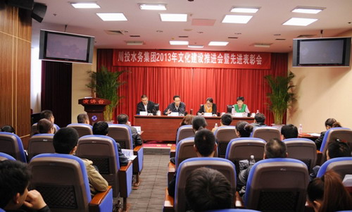 3月21日下午,川投水務(wù)在川投大廈二樓會議室召開2013年文化建設(shè)推進會暨先進表彰會,對企業(yè)推進企業(yè)文化建設(shè)工作進行安排部署,對2012年度優(yōu)秀員工、信息報送先進單位、先進個人及讀書征文活動獲獎作品進行通報表彰,并舉辦了寫作、攝影交流活動。受梁有國總經(jīng)理委托,副總經(jīng)理黃凱出席會議并發(fā)表講話。川投水務(wù)2012年度優(yōu)秀員工、本部干部員工、所屬公司綜合部分管班子成員、綜合部經(jīng)理、文秘共40人參加了會議。會議由川投水務(wù)總經(jīng)理助理、綜合部經(jīng)理何曉蘇主持。