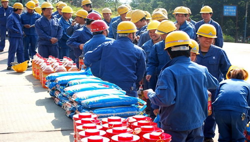 安全檢查結(jié)束后,李總一行在川投化工領(lǐng)導(dǎo)班子成員的陪同下,慰問(wèn)了生產(chǎn)一線的員工,對(duì)一線職工辛勤的工作表示衷心感謝,向他們及他們的家人表達(dá)了新年的祝福,并現(xiàn)場(chǎng)發(fā)放了慰問(wèn)物品。