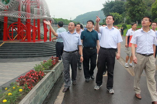 張市長(zhǎng)一行從芭馬環(huán)線進(jìn)入嘉陽(yáng)國(guó)家礦山公園芭蕉溝,初夏時(shí)節(jié)的芭蕉溝處處是綠蔭,三角梅花盛開(kāi)得格外艷麗,讓人一走進(jìn)小鎮(zhèn)就能立即感覺(jué)到這里的清爽怡人。張市長(zhǎng)是初次來(lái)到芭蕉溝,在嘉陽(yáng)集團(tuán)公司董事長(zhǎng)劉期虎等領(lǐng)導(dǎo)的陪同下,他首先參觀了嘉陽(yáng)礦山公園博物館,步入展廳,張市長(zhǎng)對(duì)一件件富有煤礦元素和礦山特有文化的展品表現(xiàn)出濃厚的興趣,連聲感慨到:“煤礦工人很了不起??!這里件件展品都充分展現(xiàn)出煤礦工人的智慧!”張市長(zhǎng)還關(guān)切地詢問(wèn)了目前嘉陽(yáng)的生產(chǎn)經(jīng)營(yíng)和職工的生活情況,聽(tīng)說(shuō)嘉陽(yáng)現(xiàn)在面臨嚴(yán)峻的困難形勢(shì),張市長(zhǎng)特別指出,整個(gè)煤炭市場(chǎng)大環(huán)境都很不理想,當(dāng)前,重要的是積極做好安全生產(chǎn)工作確保穩(wěn)定,在加大改革力度的同時(shí)尋求新的發(fā)展項(xiàng)目,董事長(zhǎng)劉期虎對(duì)張市長(zhǎng)的關(guān)心表示感謝。