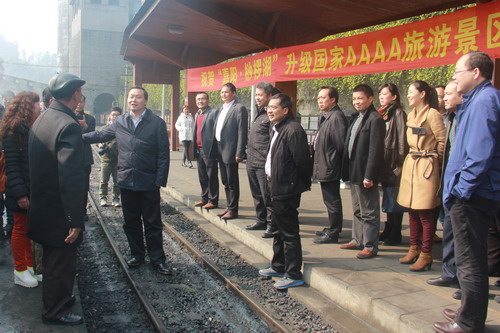 3月12日上午,樂山市市委副書記、市長張彤在市縣領(lǐng)導(dǎo)及相關(guān)部門負(fù)責(zé)人的陪同下,再次走近嘉陽國家礦山公園,調(diào)研小火車旅游情況。
