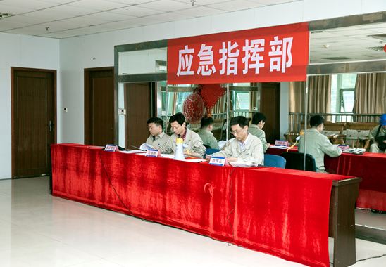 情況緊急,段明立即召集現(xiàn)場公司領導、各部門負責人,相關人員快速集結,在接待中心三樓成立應急指揮部,由公司黨委書記、總經(jīng)理、安委會主任張昊任總指揮,公司副總經(jīng)理、安委會副主任唐劍虹任副總指揮,公司總經(jīng)濟師、安委會副主任、防汛值班領導段明任指揮長。經(jīng)應急指揮部緊急會商后,張昊宣布啟動公司防汛應急預案,響應級別為二級。
