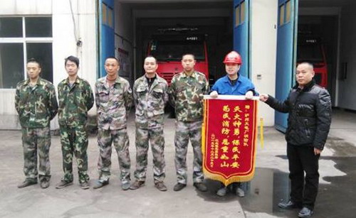 川南發(fā)電公司消防隊自2007年成立以來,在做好本公司內消防工作的同時,積極協(xié)助地方做好消防工作,確保一方平安。9年來,共接外部社會火警數(shù)十次,均為江北鎮(zhèn)周邊民居村舍。贈旗儀式上,江北鎮(zhèn)領導的一句“只要一發(fā)生火警,川南發(fā)電公司的消防隊總是在第一時間趕到”道出了川南發(fā)電公司消防隊為保當?shù)卮迕穹老踩?、構建和諧村企所做的努力。(吳?。?BR>