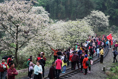 4月9日,嘉陽小火車景區(qū)芭蕉溝徹底high爆了!一年一度浪漫唯美的桐花之約,吸引了來自成都、眉山、樂山等地的眾多攝影團隊和數百位四處“尋山問水”的徒步群友。觀光攝影專列用他獨有的步調帶著大家的歡笑和愉悅如約而來,桐子花開得正艷,小火車拉響汽笛噴著蒸汽穿行其間,攝友們伺機而動,姑娘們笑靨如花,這時候,還管他什么攝影水平,快門一按,心情和景色,那都是美美噠。
