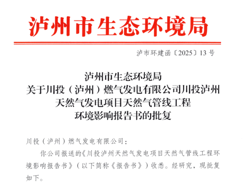 2月13日,《川投瀘州天然氣發(fā)電項目天然氣管線工程環(huán)境影響報告書》順利通過瀘州市生態(tài)環(huán)境局審批,成功獲得環(huán)評批復,這一進展標志著項目天然氣管線工程在環(huán)境保護方面達到相關要求,為工程“三同時”建設奠定了重要基礎,有助于項目的全速推進,也為項目的順利投產和未來的穩(wěn)定運行提供了保障。